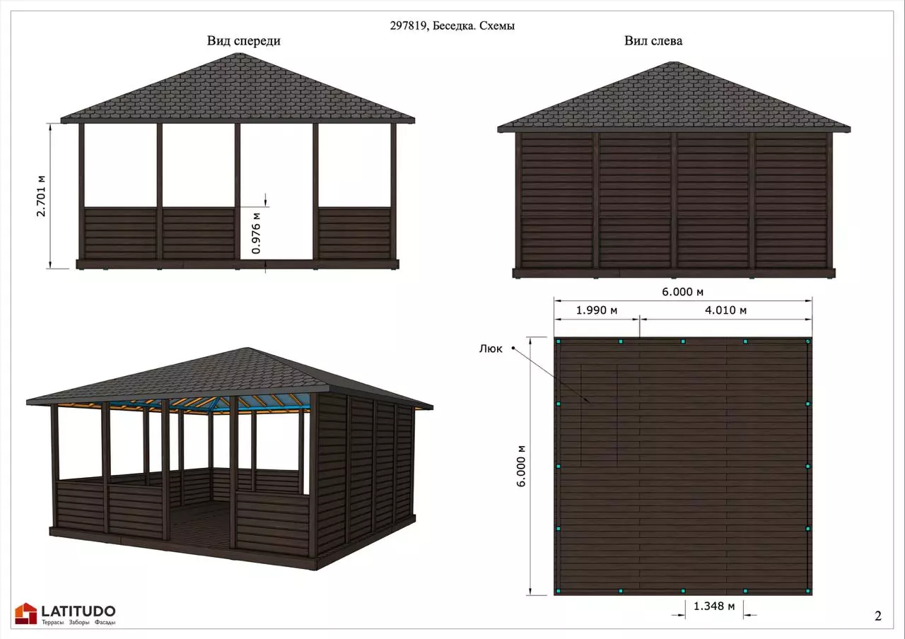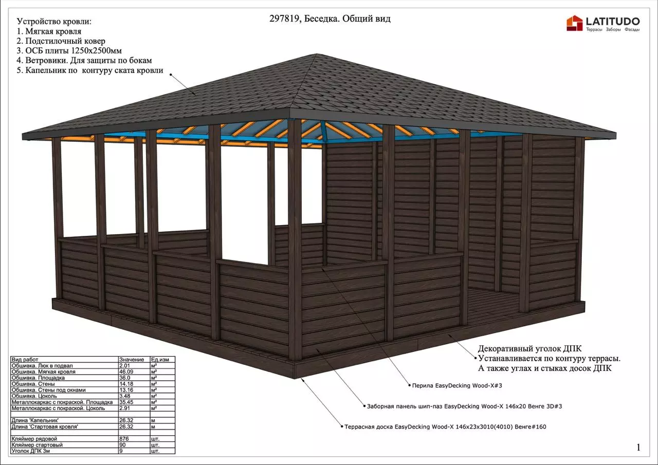 Наши конструкторы делают подробные проекты для всех беседок, даже небольших.